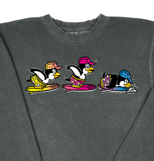 Penguins Surfing “Pigment Dyed” Crewneck Sweatshirt