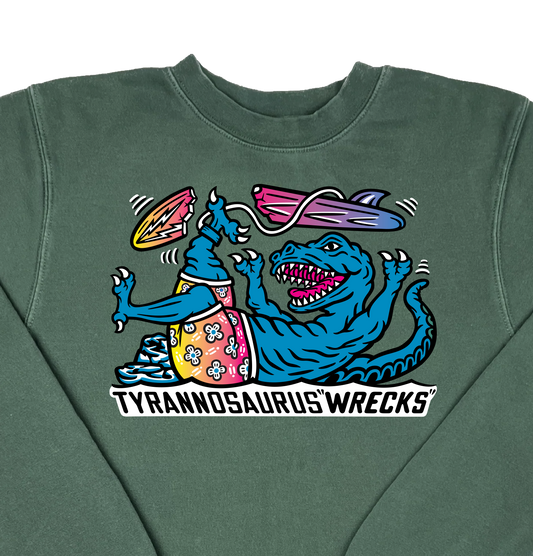Surfing Tyrannosaurus Wrecks rex “Pigment Dyed” Crewneck Sweatshirt