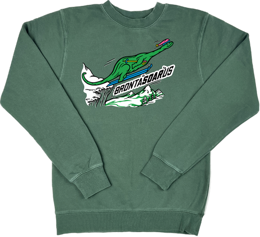 Skiing Bronta"SOAR"us Dinosaur brontosaurus Pigment Dyed Dino Crewneck Sweatshirt
