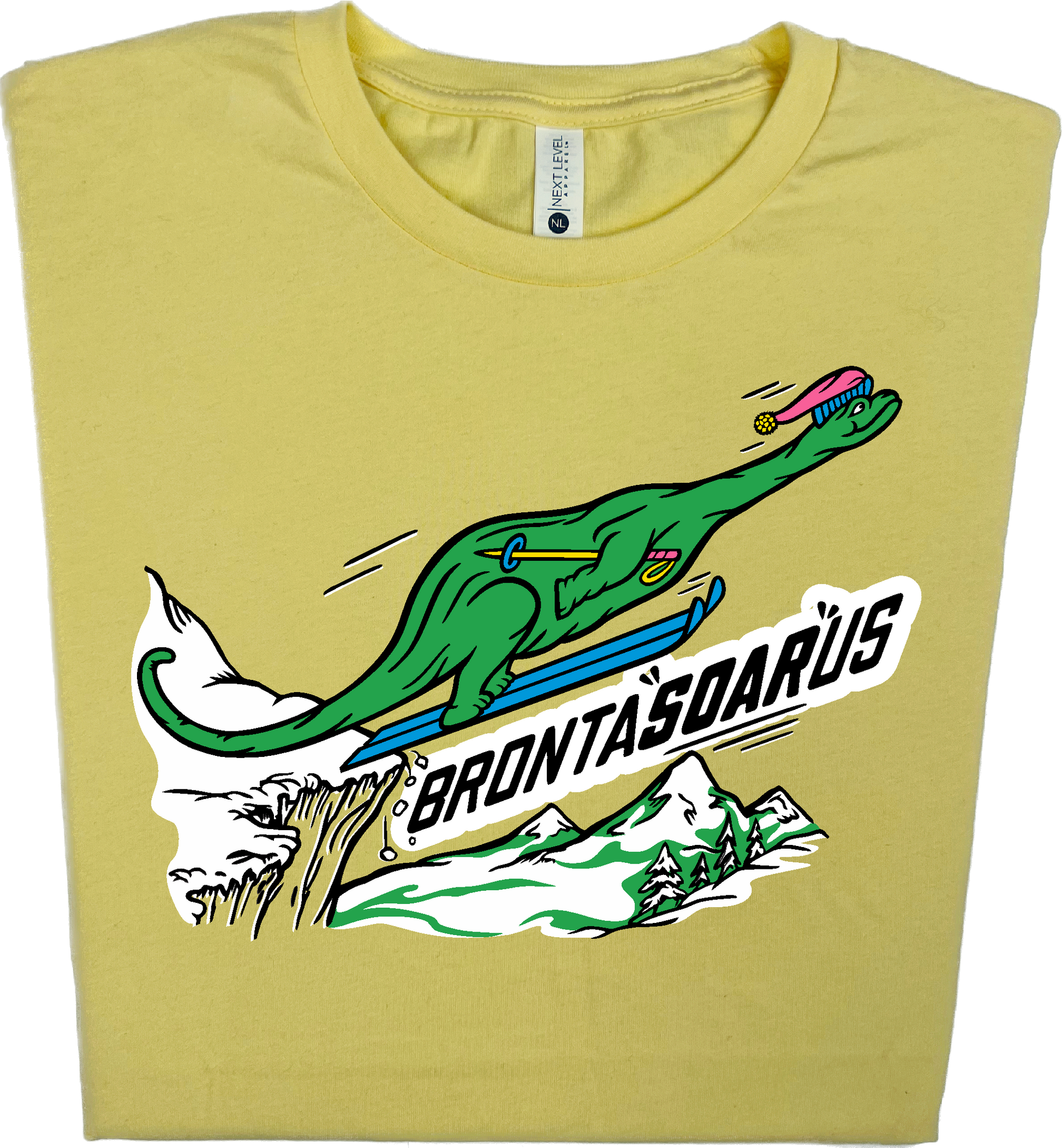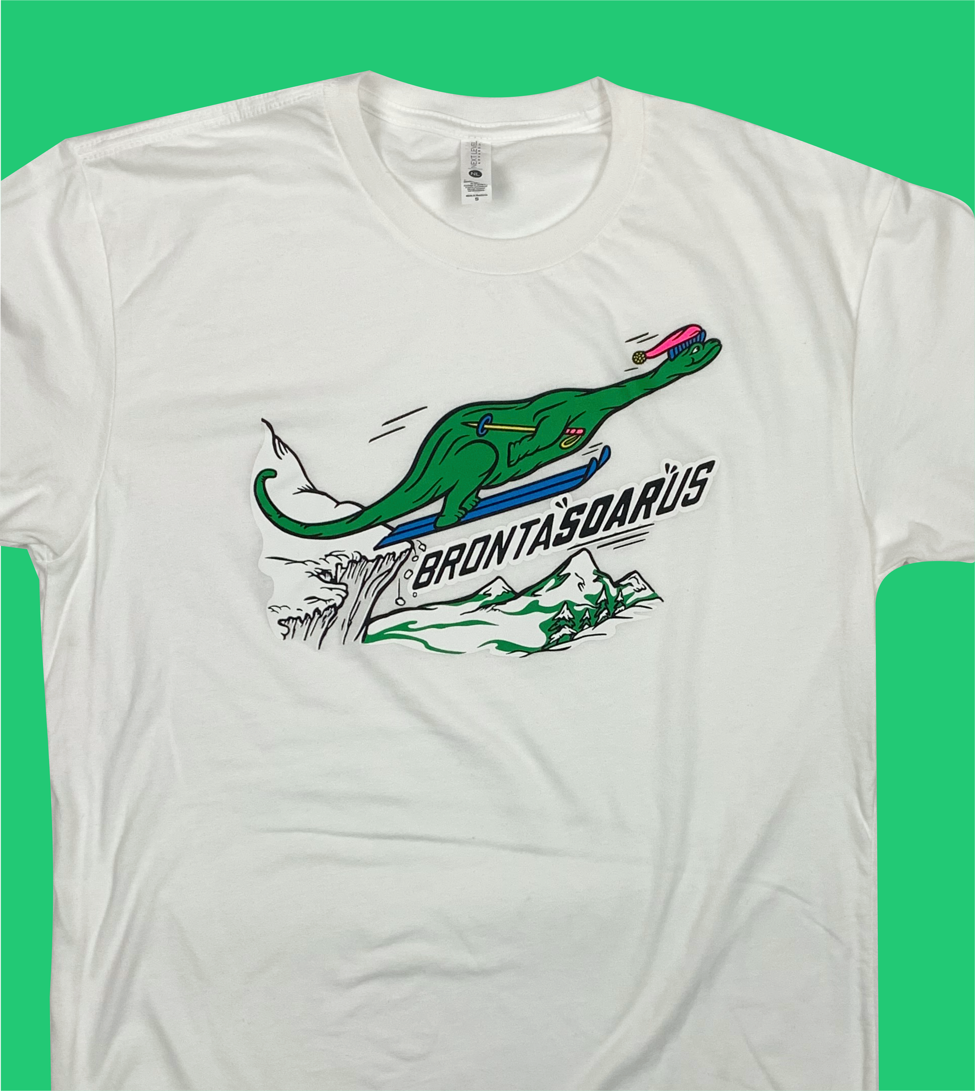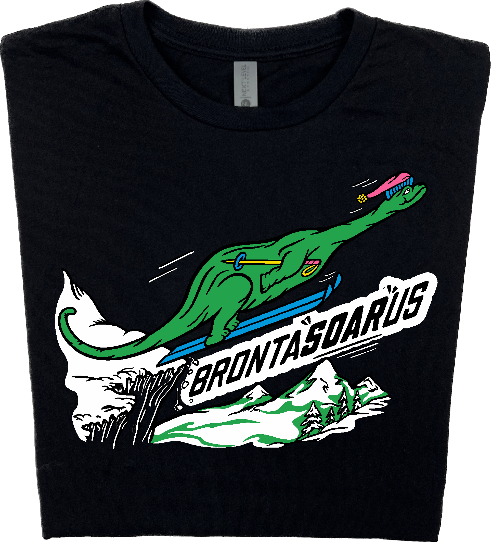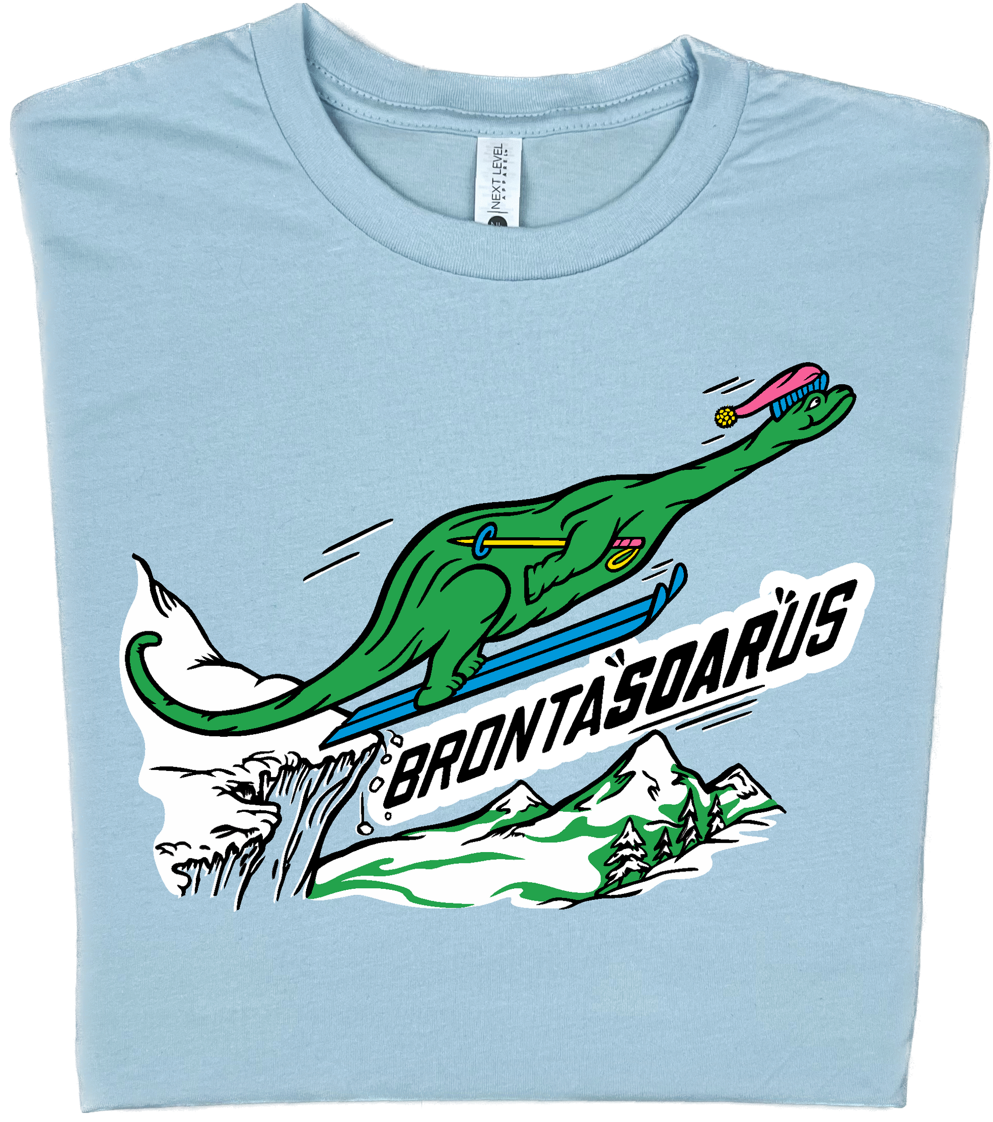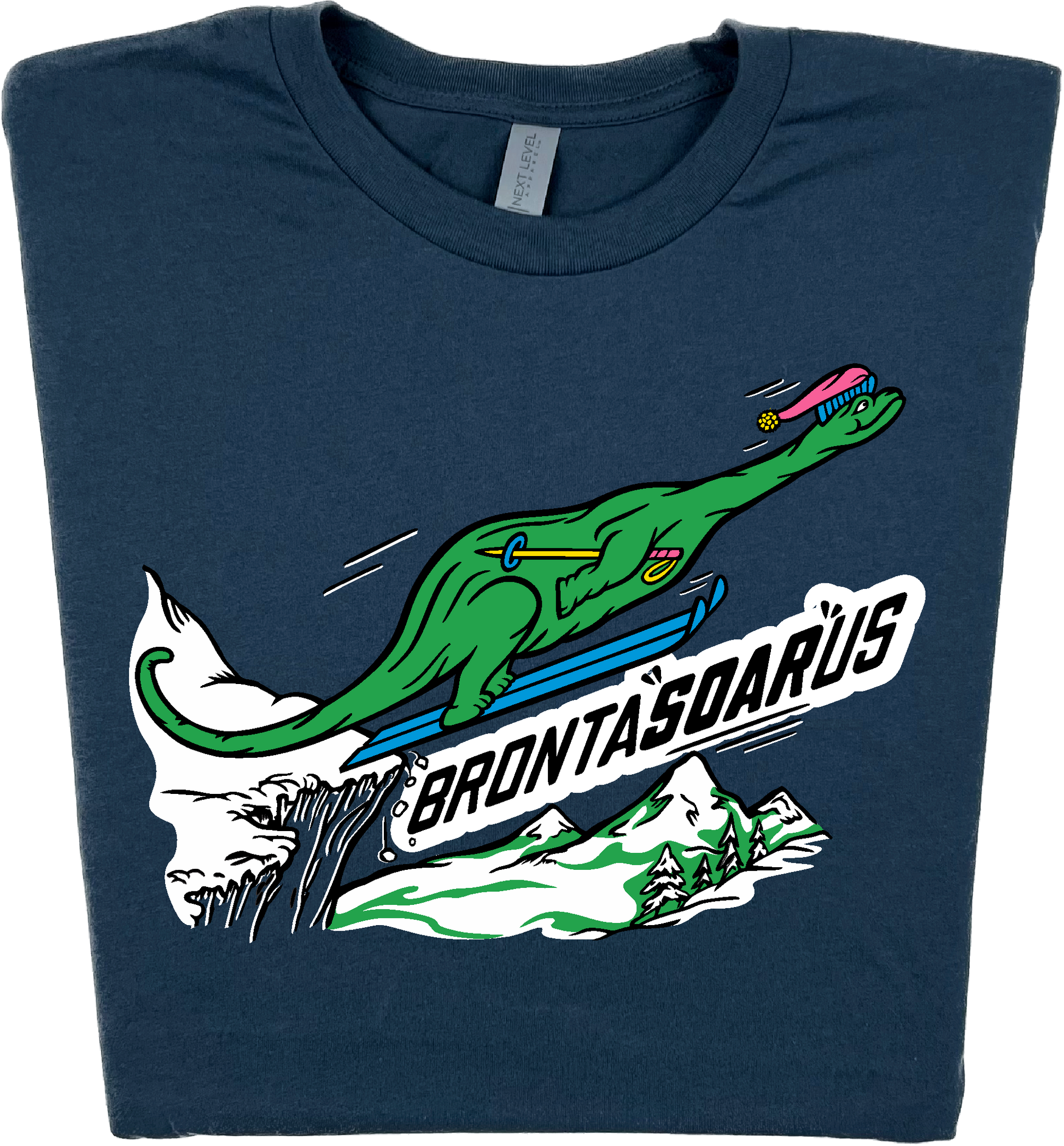 Skiing Bronta"SOAR"us Brontosaurus Dino T-shirt