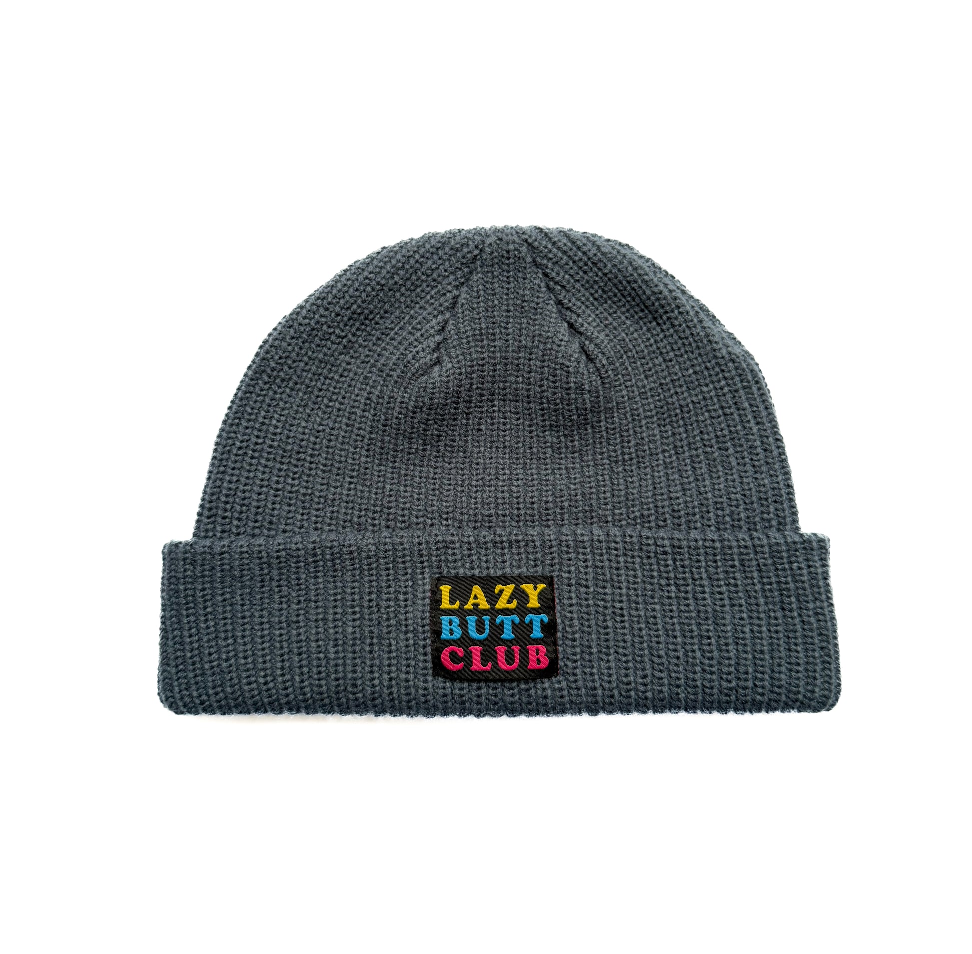This soft knit beanie is cozy, stretchy and topped with a colorful "Lazy Butt Club" woven patch for the ultimate chill-day vibe!