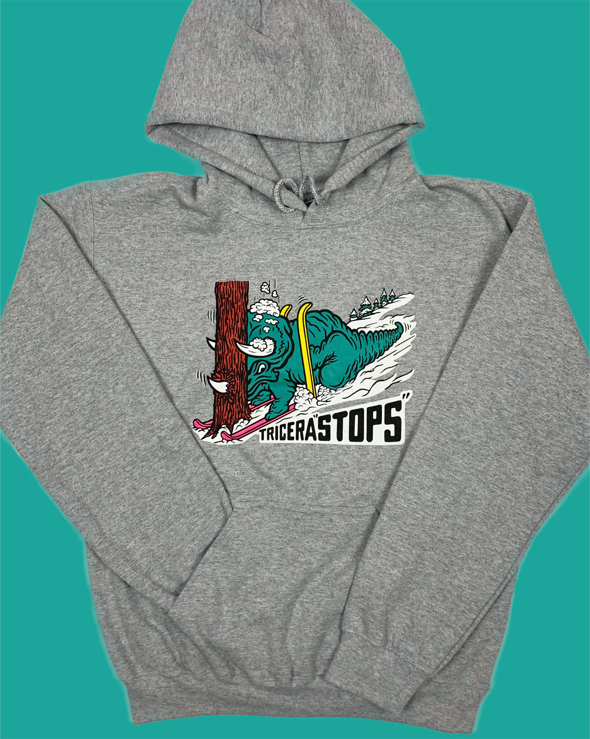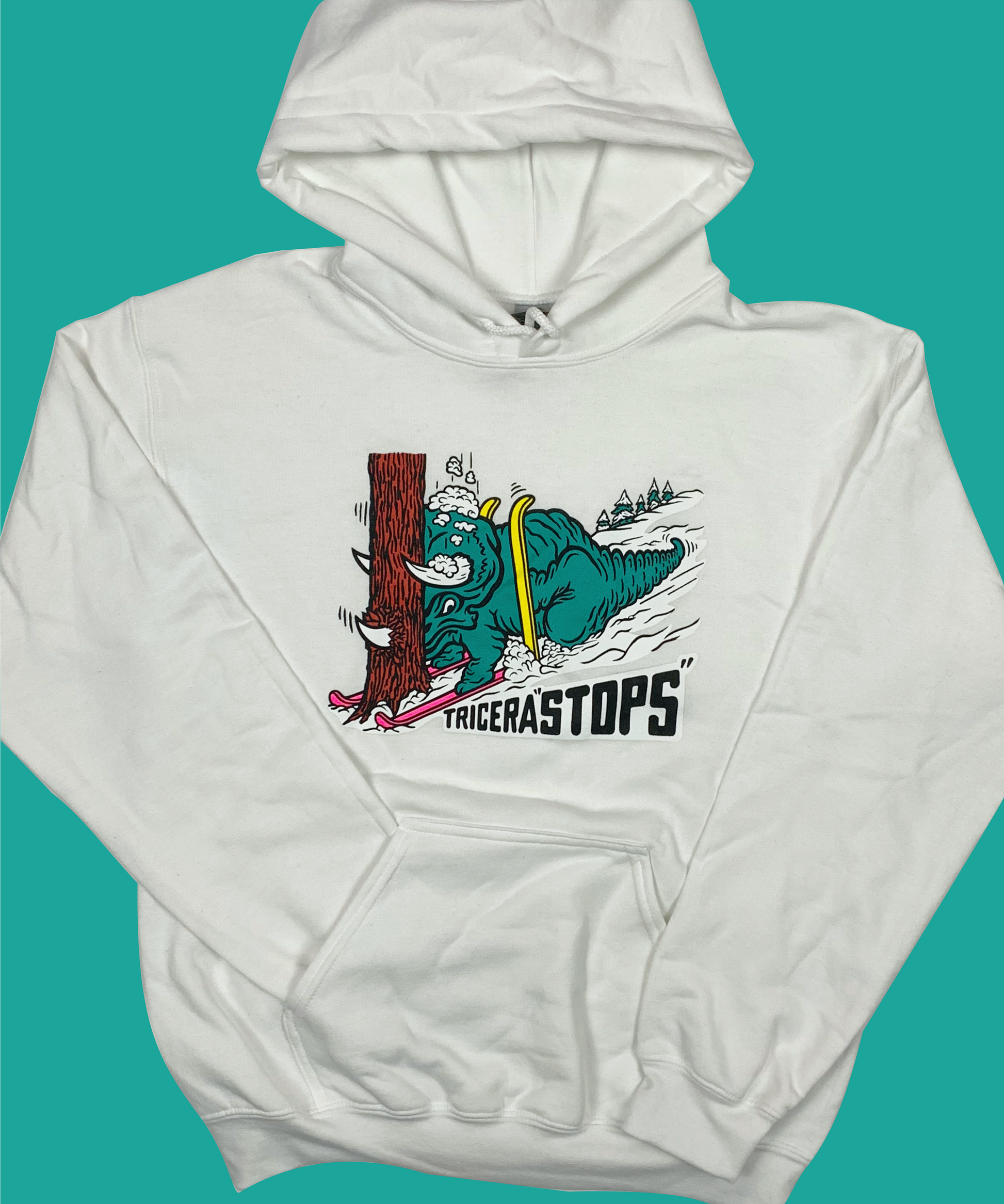 Skiing Tricera"STOPS" Triceratops Dinosaur sweatshirt Dino Hoodie